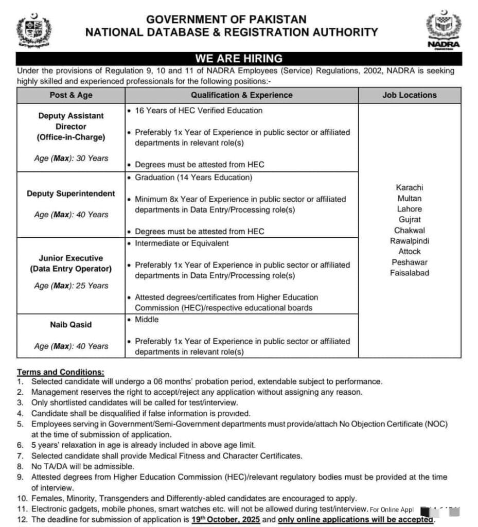 NADRA Jobs 2025 – Apply Online for Multiple Positions Across Pakistan